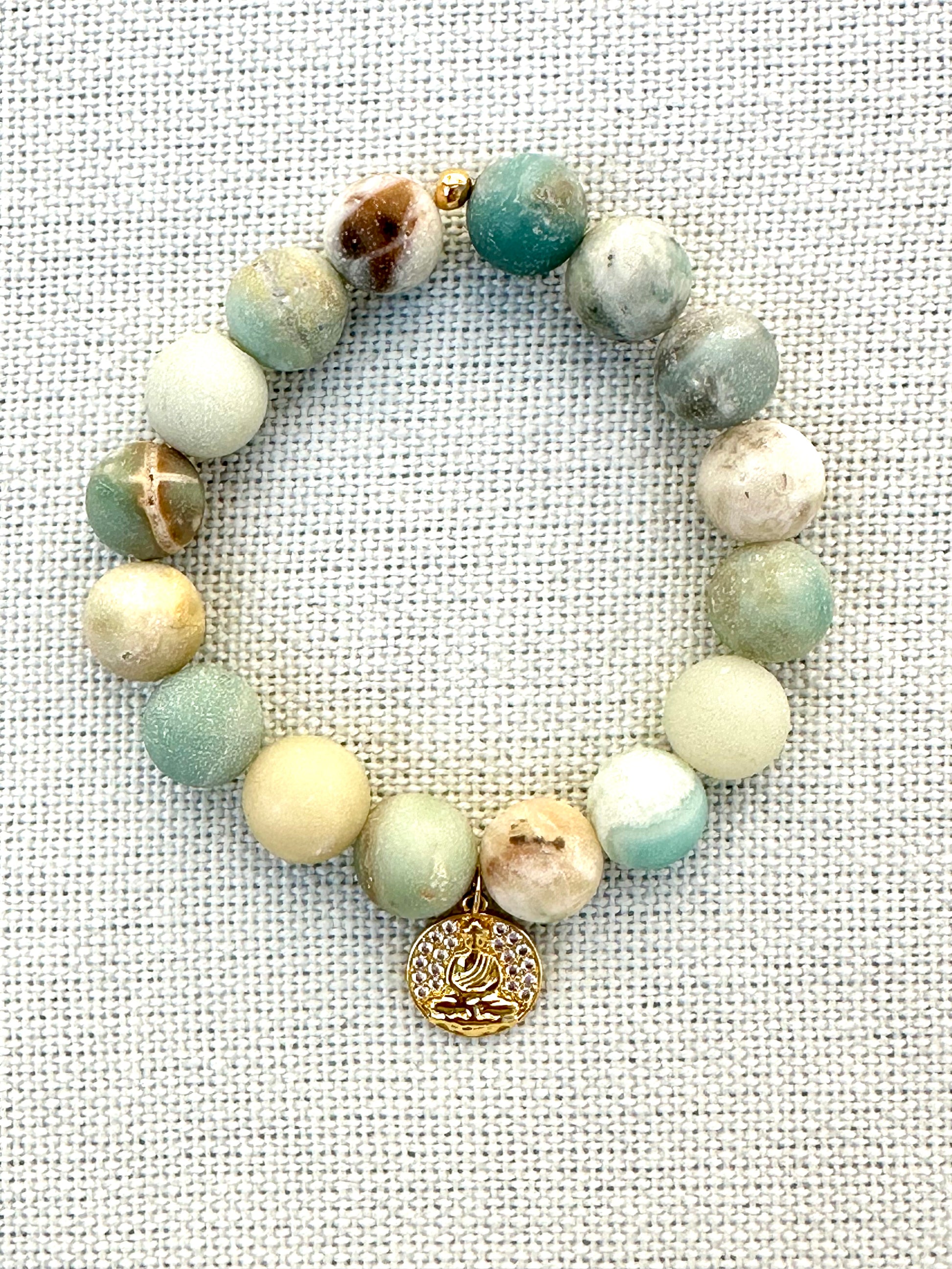 Elegant Amazonite Bracelet with Gold-Toned Buddha Charm